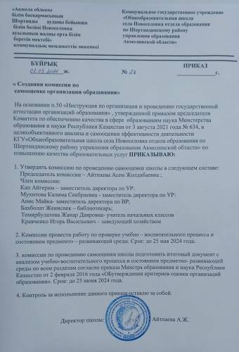 Приказ о создании комиссии по самооценке школы
